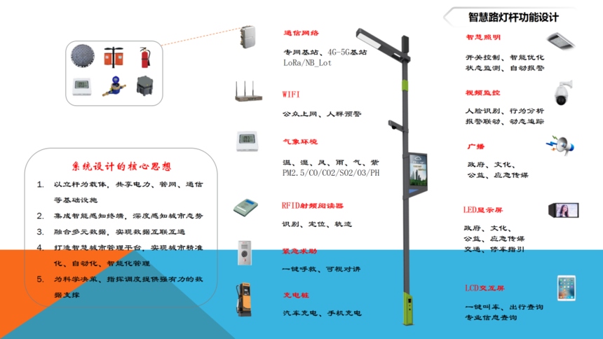 “多功能綜合桿”,又稱“智慧多功能桿”,是集智能照明、視頻監控、交通管理、環境檢測、無線通信、信息交互、緊急求助等功能于一體的公共基礎設施。是建設新型智慧城市的重要載體。藍海陽光智慧多功能綜合桿可掛載5G通信基站、WiFi無線網絡、智能節能路燈、智能安防監控、智能人臉識別、交通引導與指示、音響和廣播電視、無人機充電、汽車充電樁、停車感應支付、無人駕駛引導等設